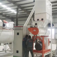 通過混合機混合原料。在該過程中,將脂肪成分添加到材料中以提高飼料的營養價值。