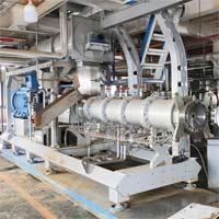 為確保質(zhì)量和產(chǎn)量,配有特殊的增壓裝置。此外,電加熱裝置提高了物料膨化率